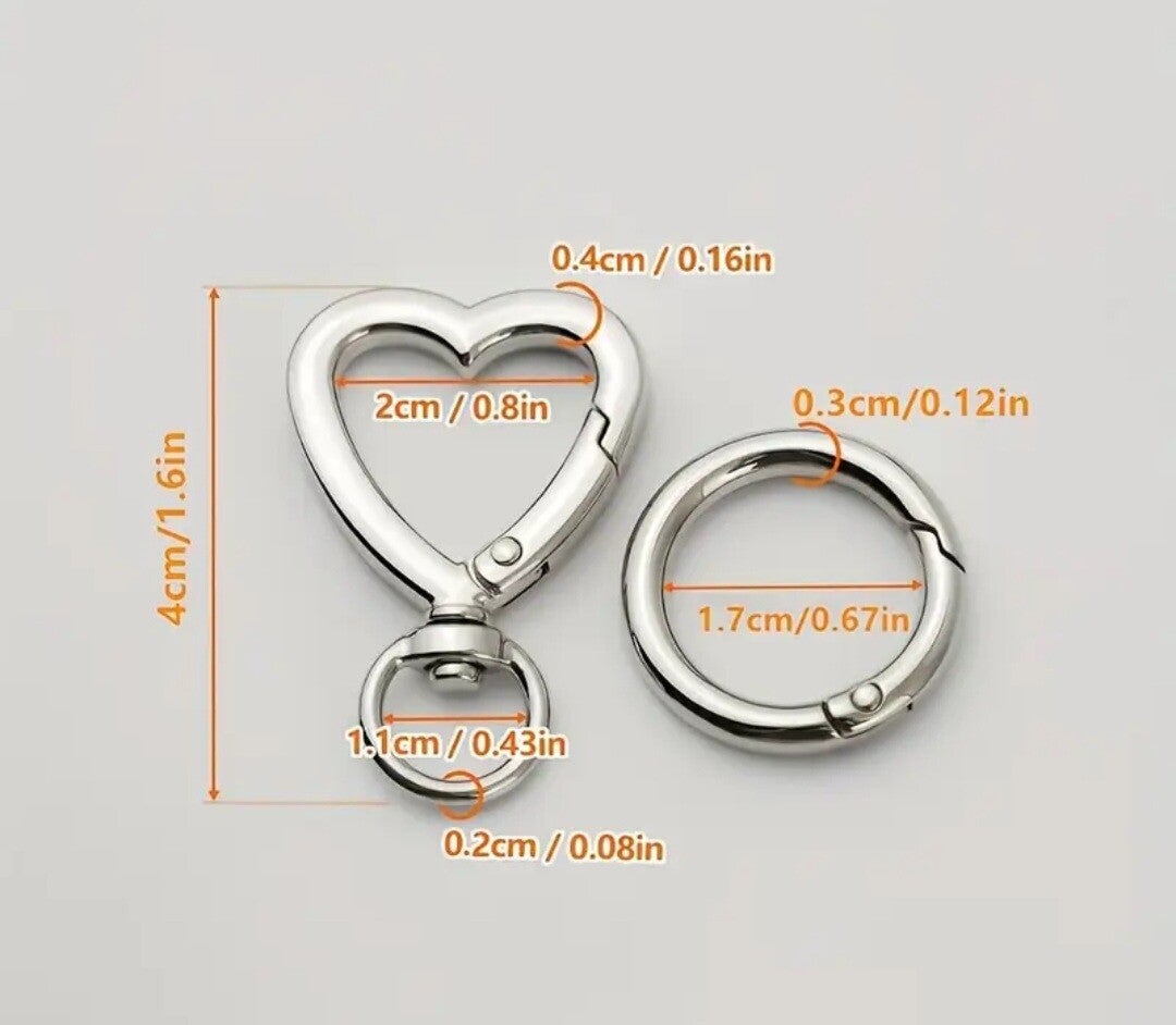 Dekorativ og solid karabinkrok formet som et hjerte – perfekt når du vil tilføre vesken eller prosjektet ditt en ekstra detalj.