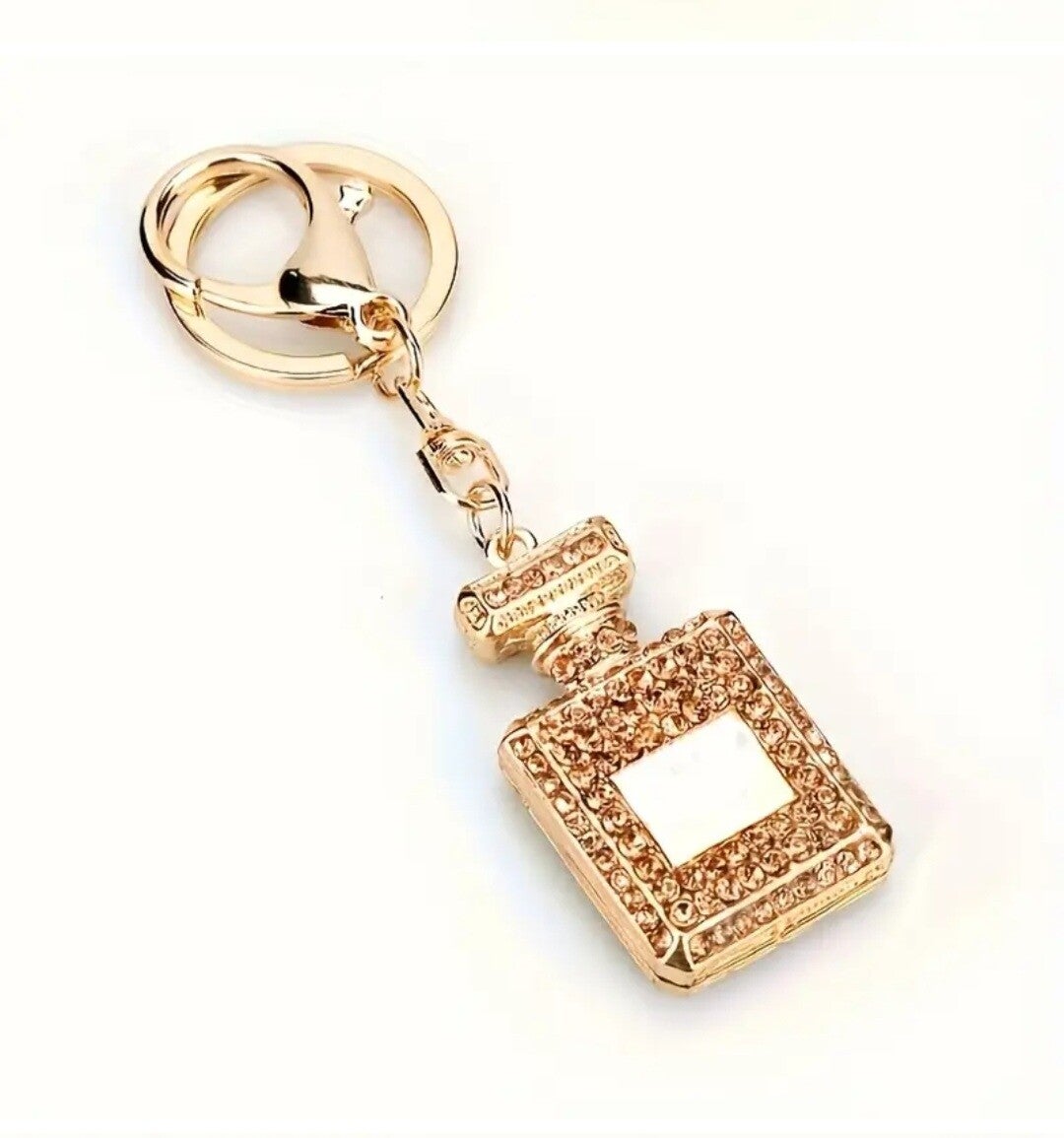 Gi vesken din det lille ekstra med denne stilrene parfymeflasken som veskepynt. Den tilfører et feminint og eksklusivt uttrykk, enten du bruker den på håndveske, strandbag eller som dekor på nøkkelknippet.