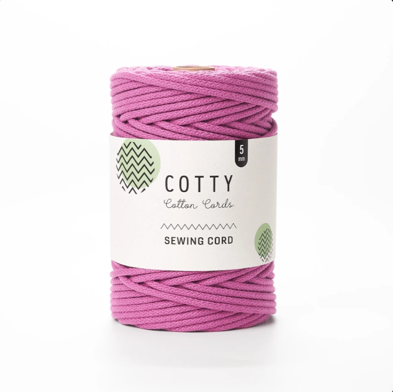 Stiv flettet bomullssnor laget av resirkulert bomull med polyesterkjerne. Perfekt til sikksakk-søm på symaskin og ideell for å lage kurver, vesker og andre DIY-prosjekter. Snoren gir stabile og formfaste produkter med et dekorativt resultat.