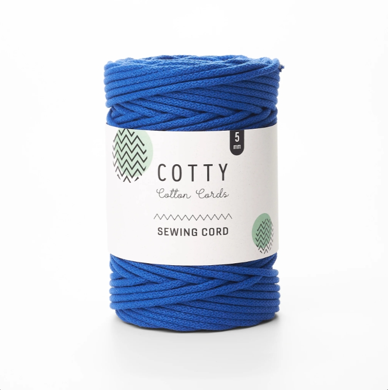 Stiv flettet bomullssnor laget av resirkulert bomull med polyesterkjerne. Perfekt til sikksakk-søm på symaskin og ideell for å lage kurver, vesker og andre DIY-prosjekter. Snoren gir stabile og formfaste produkter med et dekorativt resultat.